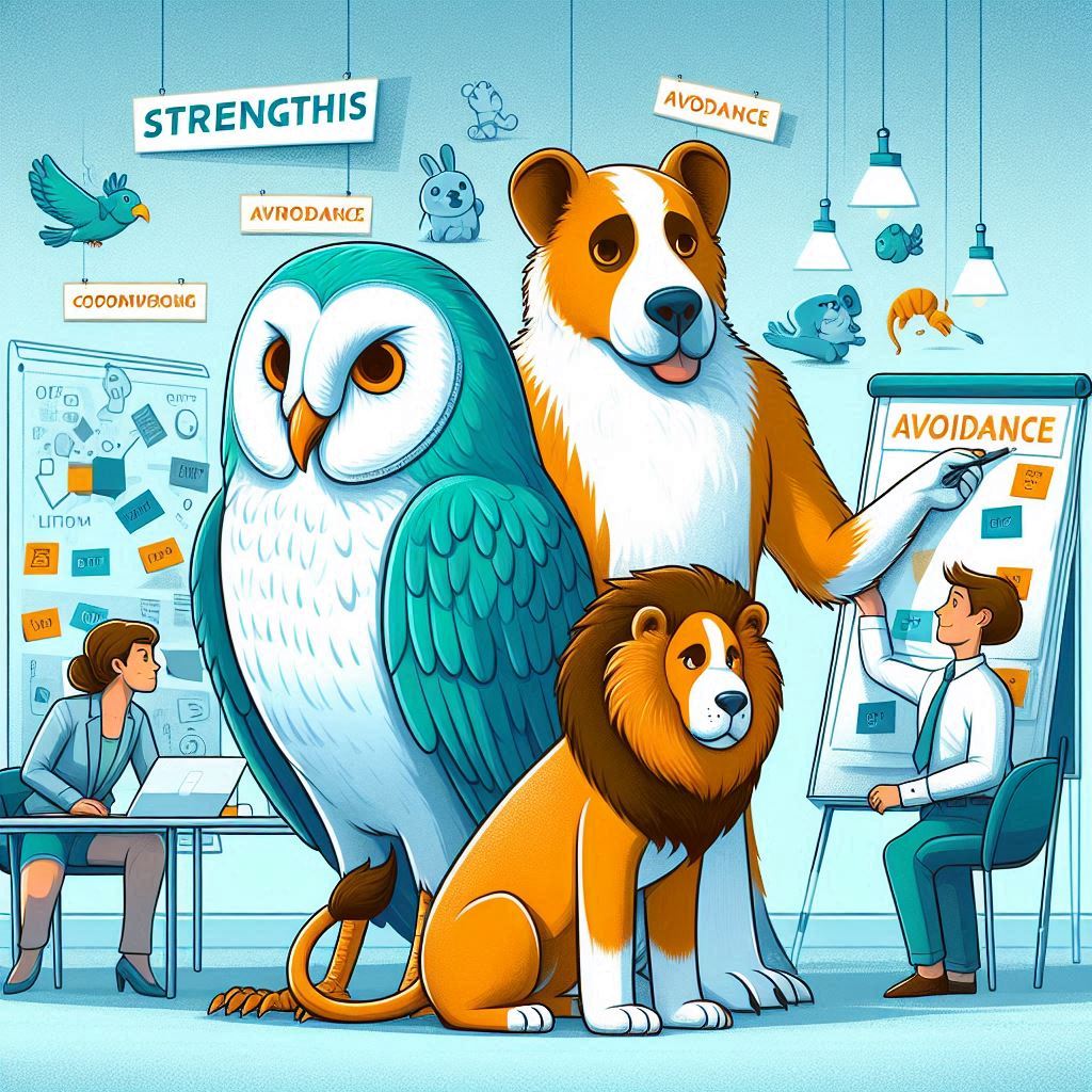 1. Schritt: Laden Sie Ihre Kolleginnen und Kollegen ein, sich zu entscheiden, mit welchem der drei Tiere sie am meisten gemeinsam haben – mit einer Eule, einem Löwen oder einem Bernhardiner. Es geht nicht um eine „Verwissenschaftlichung“ von Persönlichkeitsprofilen, sondern um einen humorvollen Austausch.